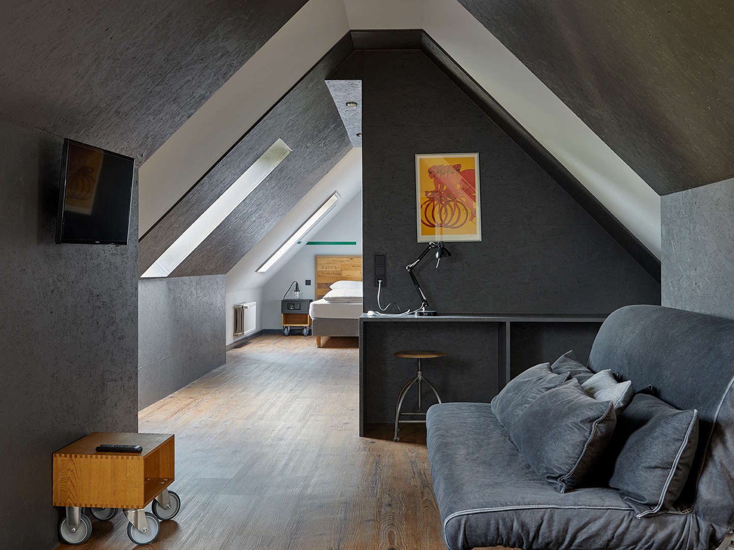 Willkommen im Underdog Hotel Hamburg! Vom guten Schlafen, kommunikativen Arbeiten und entspannten Spielen in Hamburg Wandsbek. Wir freuen uns auf wissenshungrige Touristen, kreative Schaffensgeister, entspannte Weltenbummler und ruhesuchende Bosse, auf Meetings und Veranstaltungen. Wir freuen uns auf Sie! Bei uns ist nichts einfach „Standard“ – außer vielleicht das Außergewöhnliche. Entdecken Sie viele besondere Details, die in Handarbeit gefertigt wurden, eine Geschichte erzählen oder einfach nur pfiffig sind. Entscheiden Sie immer wieder neu – sitzen Sie lieber auf einem Designer-Hocker oder auf der Holzkiste … Hier können Sie wendig und flexibel bleiben, sich zurückziehen oder kommunizieren, abschalten oder aufdrehen. Vom Underdog zur Oberklasse. Unser Buffet bietet alles, was echte Frühstücker begehren. Frisches Brot und leckere Brötchen, süßes und herzhaftes zum Belegen. Filterkaffee, Tee, Müsli, Flakes, Obst und leichte Joghurts. Frische Milch, Eier und Obstsäfte. Sollten Sie noch etwas anderes wünschen, lassen Sie es uns wissen. Wir möchten, dass Sie perfekt in den Tag starten! In unserem Fitnessbereich finden Sportbegeisterte einen Trainingsraum, der Ihnen täglich bis 24 Uhr zur Verfügung steht. Besondere Sportgeräte und Hilfsmittel, die auf effektive Workouts ohne zusätzliche Gewichte ausgelegt sind, stehen unseren Gästen hier zur Verfügung. So gibt es z.B. ein Wasser-Ruder-Gerät, welches, Dank der gelenkschonenden Trainingsbewegung, für Einsteiger als auch Profis geeignet ist. Außerdem im Repertoire: Fitnessbänder, ein Box-Sack, Medizinbälle und vieles mehr. Die Benutzung ist im Zimmerpreis inbegriffen. Direkt vor der Haustür finden Sie zudem eine großartige Joggingstrecke durch das malerische Wandsetal. Den Routenplaner gibt es an der Hotel-Rezeption. Denn das UNDERDOG ist unaufdringlich und zurückhaltend auf eine kreativ-charmante Art und Weise. Eines ist allerdings sicher, unser Kaffee ist unschlagbar! Warum? Finden Sie es heraus! Das Beste an der Entscheidung für eines unserer Angebote ist, dass sie immer die richtige ist. Ankommen, entspannen, gut schlafen und mit neuer Energie in den Tag oder Abend starten. Unser Team ist, wie es ist – ganz unkompliziert und unaufdringlich. Und immer für Sie da. Wir bitte um Ihr Verständnis, dass Haustiere im UNDERDOG nicht erlaubt sind. Um die Buchung abzuschließen, bitten wir Sie, uns innerhalb von 7 Tagen eine Zahlungsgarantie zukommen zu lassen. Dies kann per Hinterlegen von Kreditkartendaten oder einer Vorauszahlung der Buchungssumme erfolgen. Bitte nehmen Sie Kontakt mit uns auf, da nach der 7-Tage-Frist Ihre Buchung verfällt. Wir freuen uns auf Sie im Underdog Hotel Hamburg!